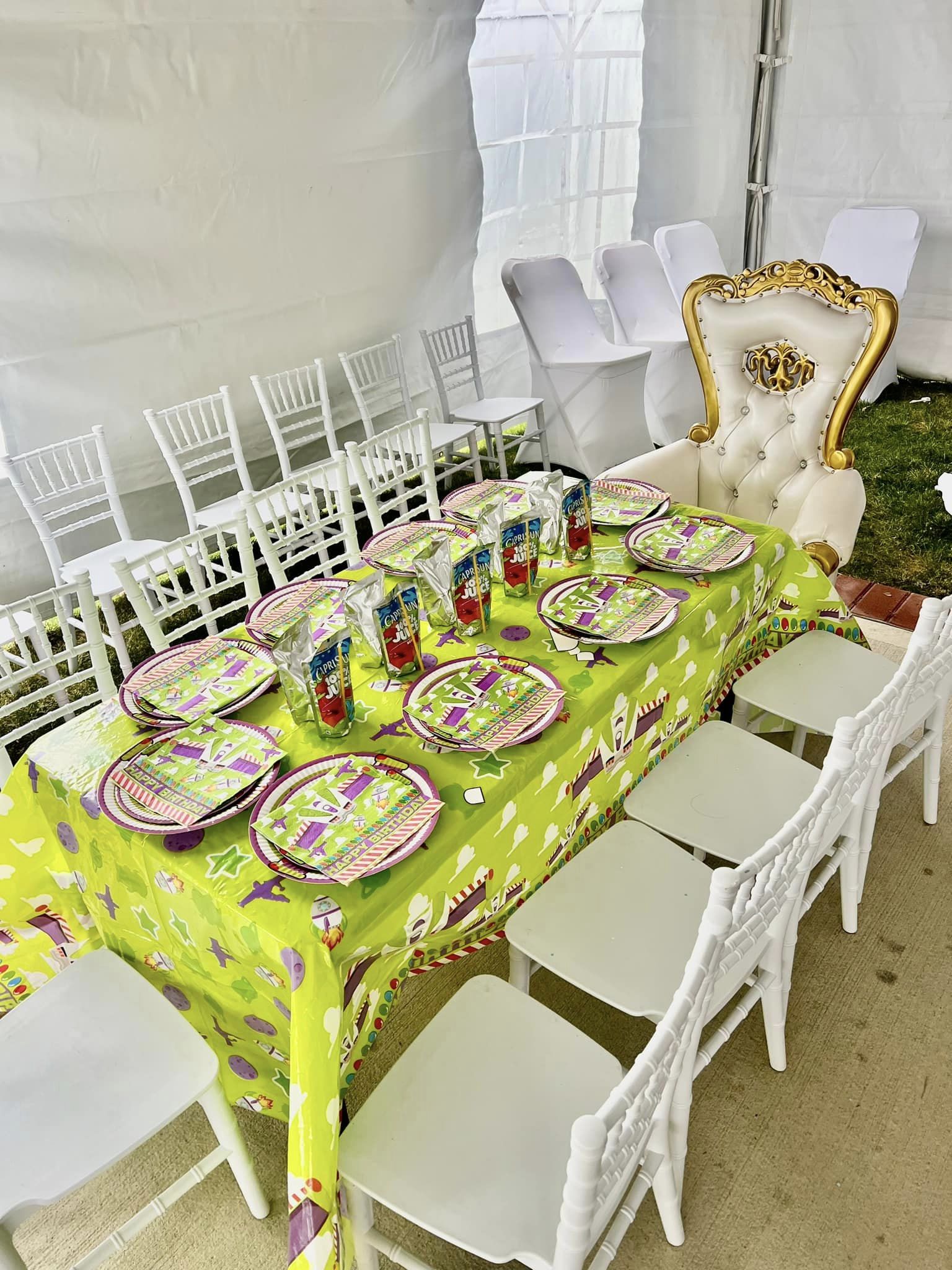 🎪 Everything You Need in One Place: From elegant tents, tables, and chairs to linens, dinnerware, and decorations tailored to any theme, we provide it all to make your event stress-free.